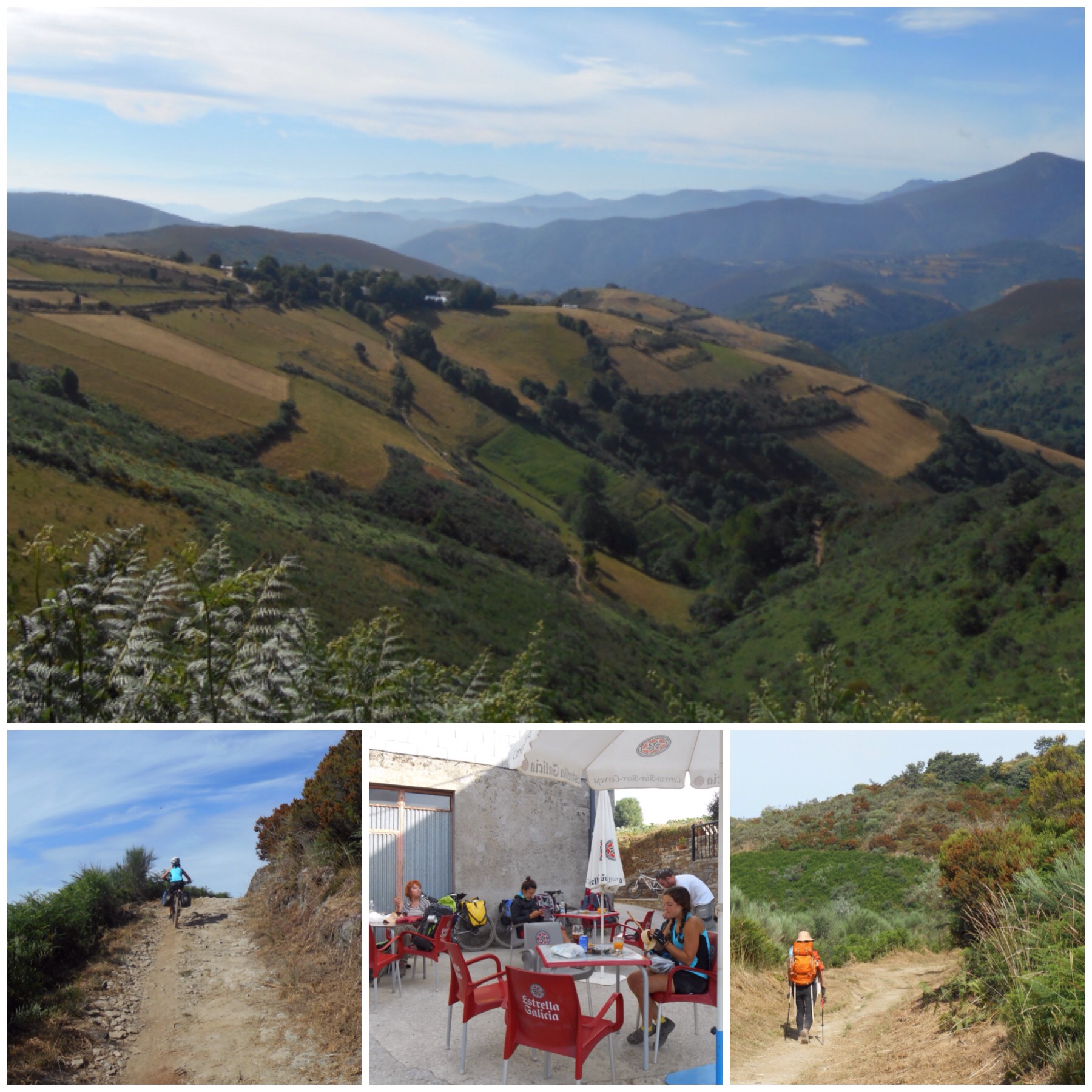 De nuevo un día durísimo. Llevo tres Caminos en bici y siempre explico lo mismo: las etapas gallegas son las más agotadoras. Por varias razones: porque se acusa el cansancio acumulado y especialmente el del día de entrada a Galicia (por el Cebreiro en el Camino Francés o por los altos de Padornelo y A Canda en la Vía de la Plata), por el ansia de llegar y, sobre todo, por la orografía, con constantes subidas y bajadas. Todo eso hace que 50 km en Galicia cuesten más que 100 en la Meseta. En Castilla pueden hacerse kilómetros con relativa facilidad y aquí parece que el cuentakilómetros no avance aunque, a cambio, hoy no hace nada de calor.
