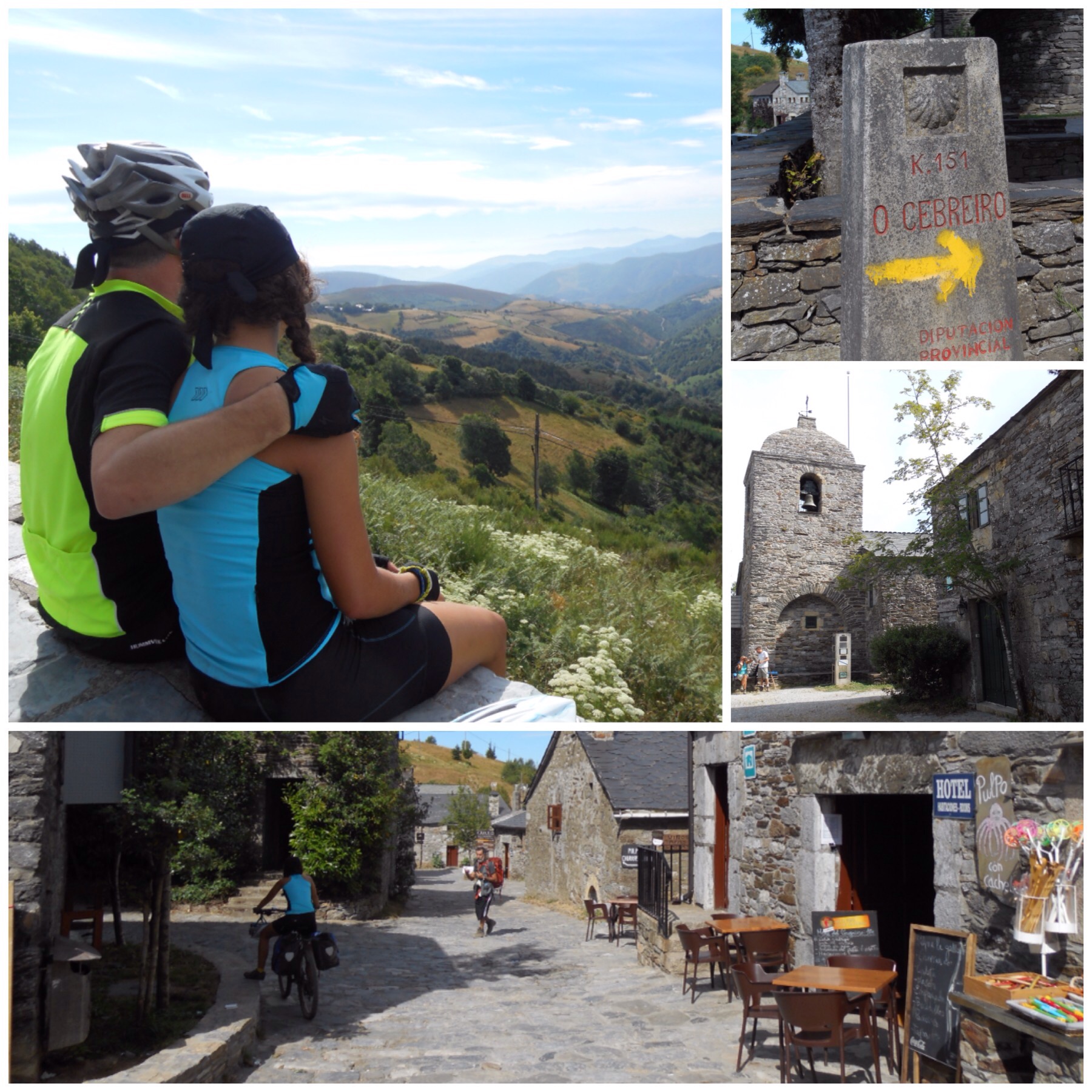 Y por fin llegamos al Cebreiro. Paramos un rato a contemplar la vista y nos damos cuenta que Galicia nos recibe con una temperatura excelente. Ni rastro del calor de los días anteriores. En uno de los bares de su única calle nos comemos un bocata buenísimo. Nos lo hemos ganado.