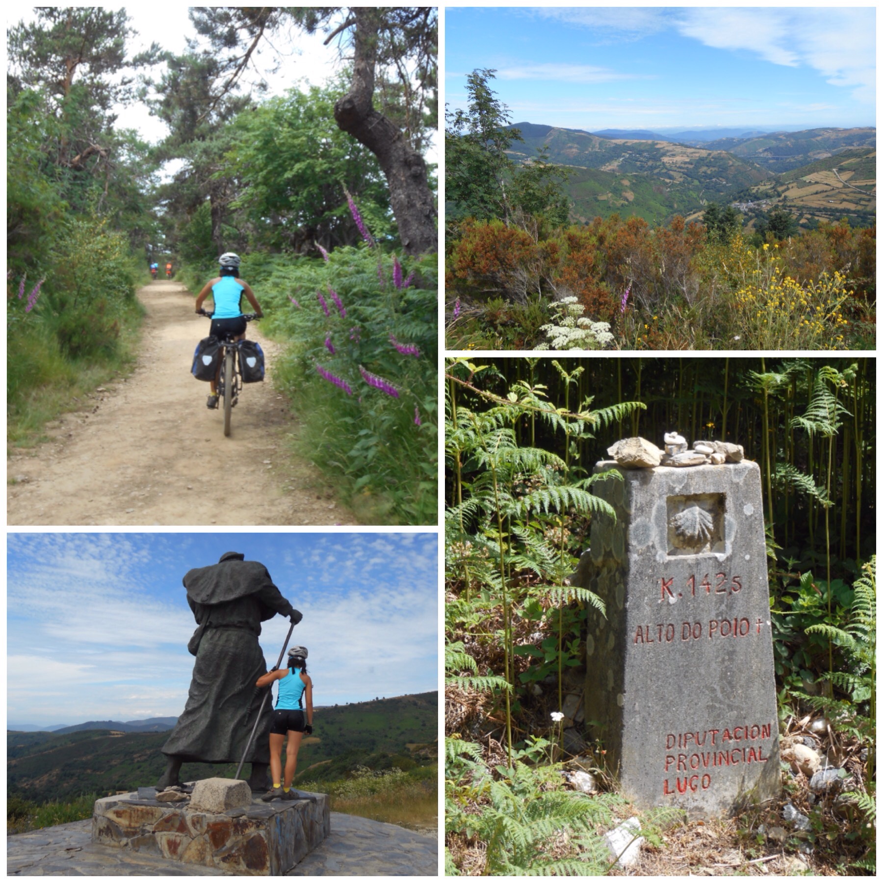 Curiosamente, después de O Cebreiro el Camino sigue subiendo. En los siguientes 8 km se sube a un nuevo alto, el de San Roque, se baja a un pueblo y se vuelve a subir a otro alto, el Alto do Poio. La subida final a éste último es casi peor que la del Cebreiro. Al final tenemos por fin unos kilómetros de descenso por senderos hasta Triacastela.